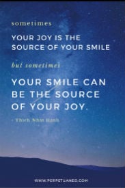 My favorite meditation is smiling meditation. Smiling is a quick hack that sends our brains signals to feel peaceful and safe. As you breathe, feel yourself giving a relaxed smile. Widen your smile until you feel it connect with a place inside where you feel calm and warm. Shift your attention to your eyes, basking in the feeling of warmth. Allow your eyes to smile. And as you continue to breathe in and out, connect with a sense of your whole body smiling.