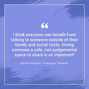Name: Kendra Simpson Licensing Info: Licensed Clinical Social Worker [LCSW], Licensed Independent Substance Abuse Counselor [LISAC] Where you live: Arizona Hometown: Michigan Amount of time working at Talkspace: almost two years Time working as a Therapist: 15 years