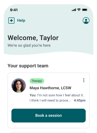 If your first therapist isn't a fit, it's easy to select a new one, at no additional cost.